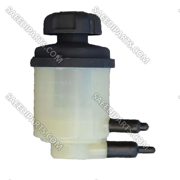 مخزن روغن هیدرولیک فرمان خودرو که استوانه‌ ای شکل است در نزدیکی تسمه هیدرولیک تعبیه شده و روی آن برچسبی است که این قطعه را مشخص می‌کند. این قطعه از پلاستیک و فلز ساخته شده . در اکثر ماشین ها ، محل قرارگیری این مخرن در جای مشابهی است ولی بعضی ماشین های جدید ممکن است به دلیل صرفه جویی در هزینه‌ها و یا بیشتر کردن فضای اطراف موتور، جای آن را عوض کرده باشند.