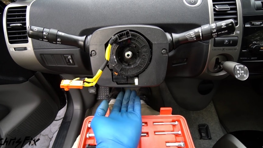 برای جداکردن ساعتی فرمان خودرو در ابتدا ، باید مدول ایربگ و سپس دو عدد فیش روی فنر ساعتی (ایربگ و بوق) ، غربیلک فرمان و دو عدد محافظ مشکی رنگ بالا و پایین سوییچ که (محافظ بالایی با قرار دادن یک پیچگوشتی در وسط هر دو لایه بالا و پایینی و اعمال فشار به سمت بالا جدا میشود) و (محافظ پایینی با استفاده از چهارسو سه پیچ آن باز شده و از زیر جدا میشود) ، و در آخر سه عدد پیچ و دو عدد فیش زیر فنر ساعتی (ایربگ و بوق) ، باز شوند.